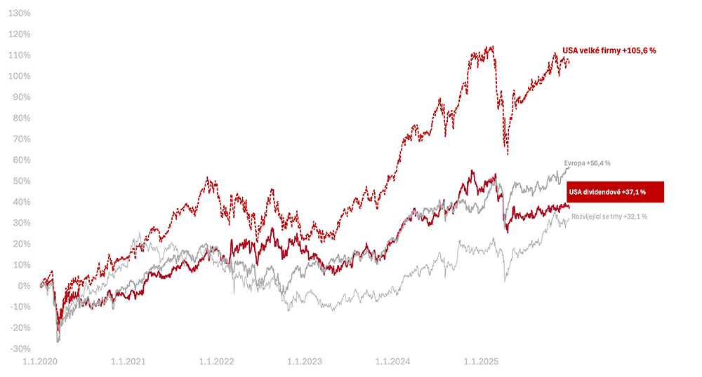 Od začátku roku 2025 jsou tak americké akcie v CZK −0,7 %. Americké dividendové ztratily − 6,1 % v CZK.